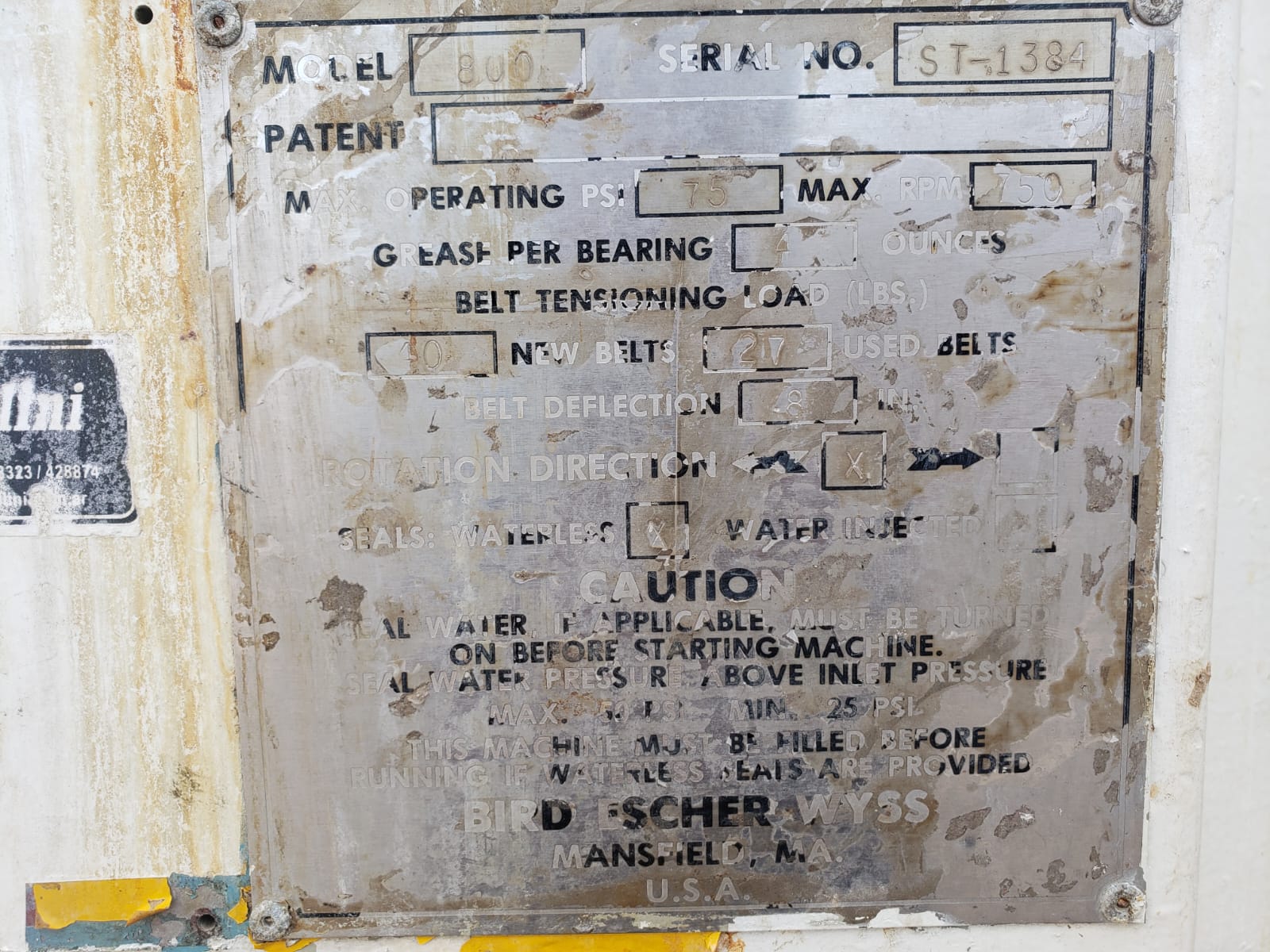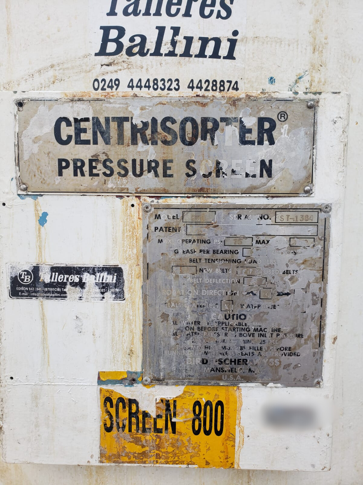 Centrífugadora Marca Centrisortes pressure screen Modelo 800 Serie n° ST-1384